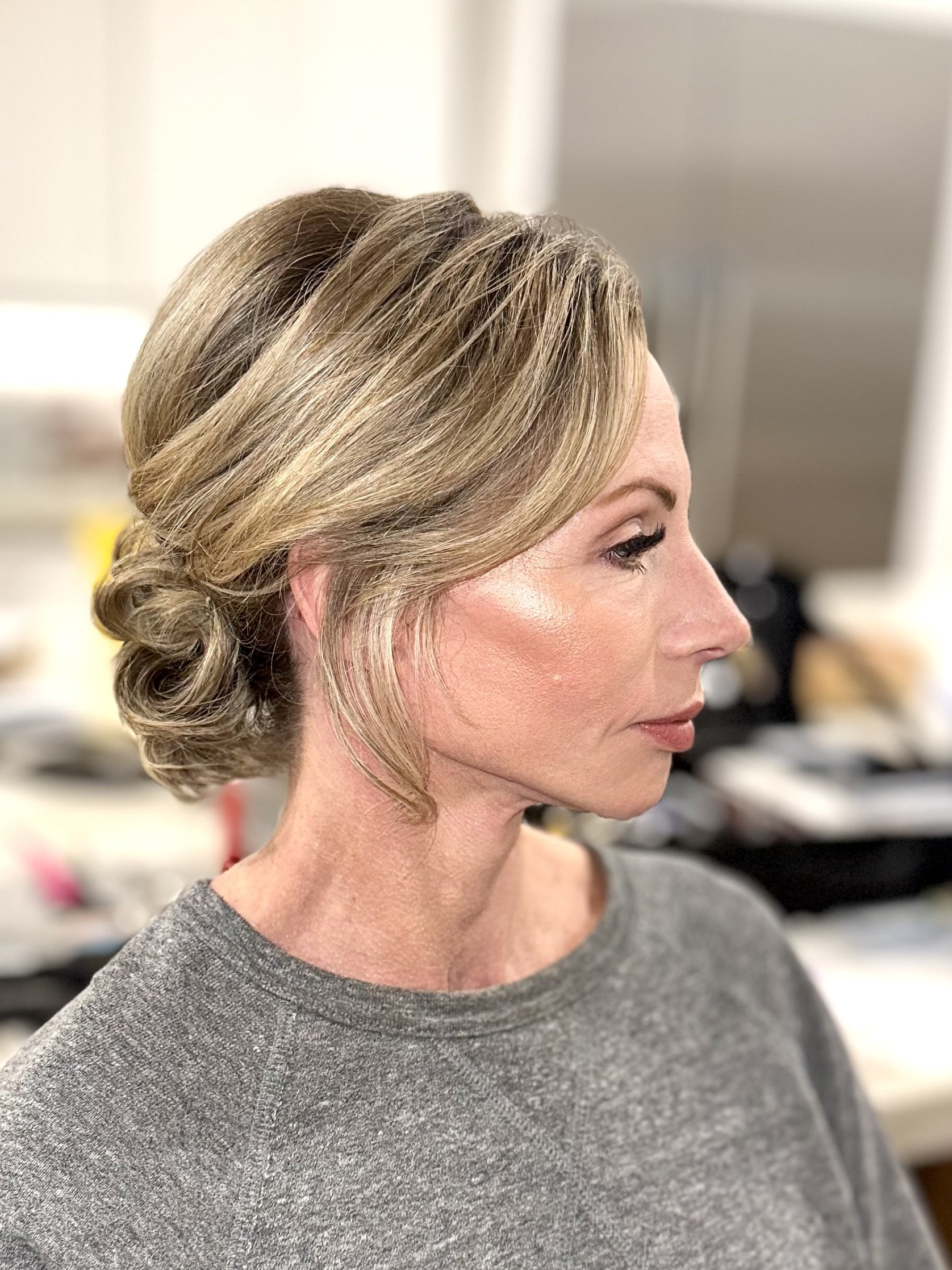 I did a soft natural glam with lash cluster and a sleek classic low bun for Christina