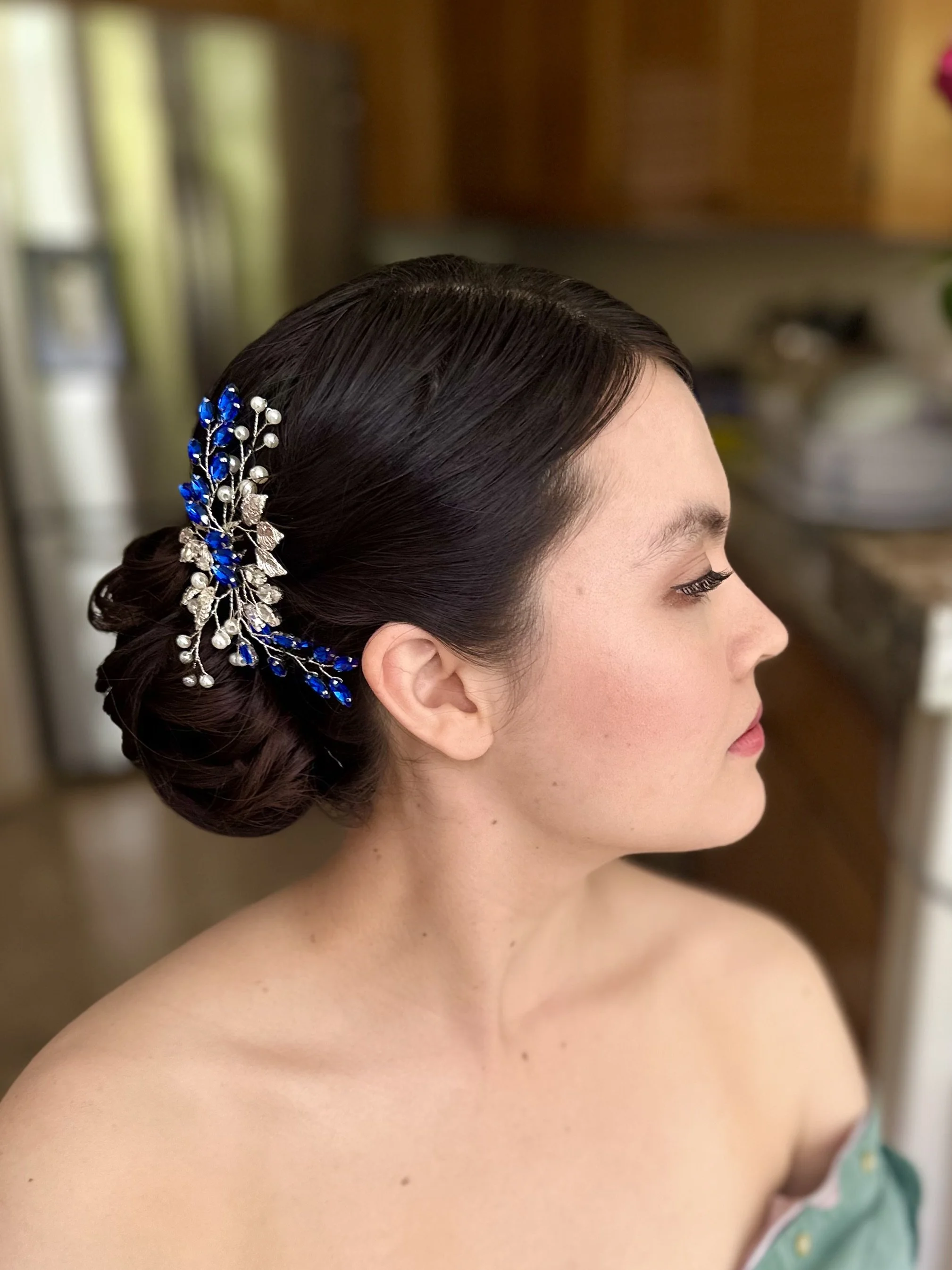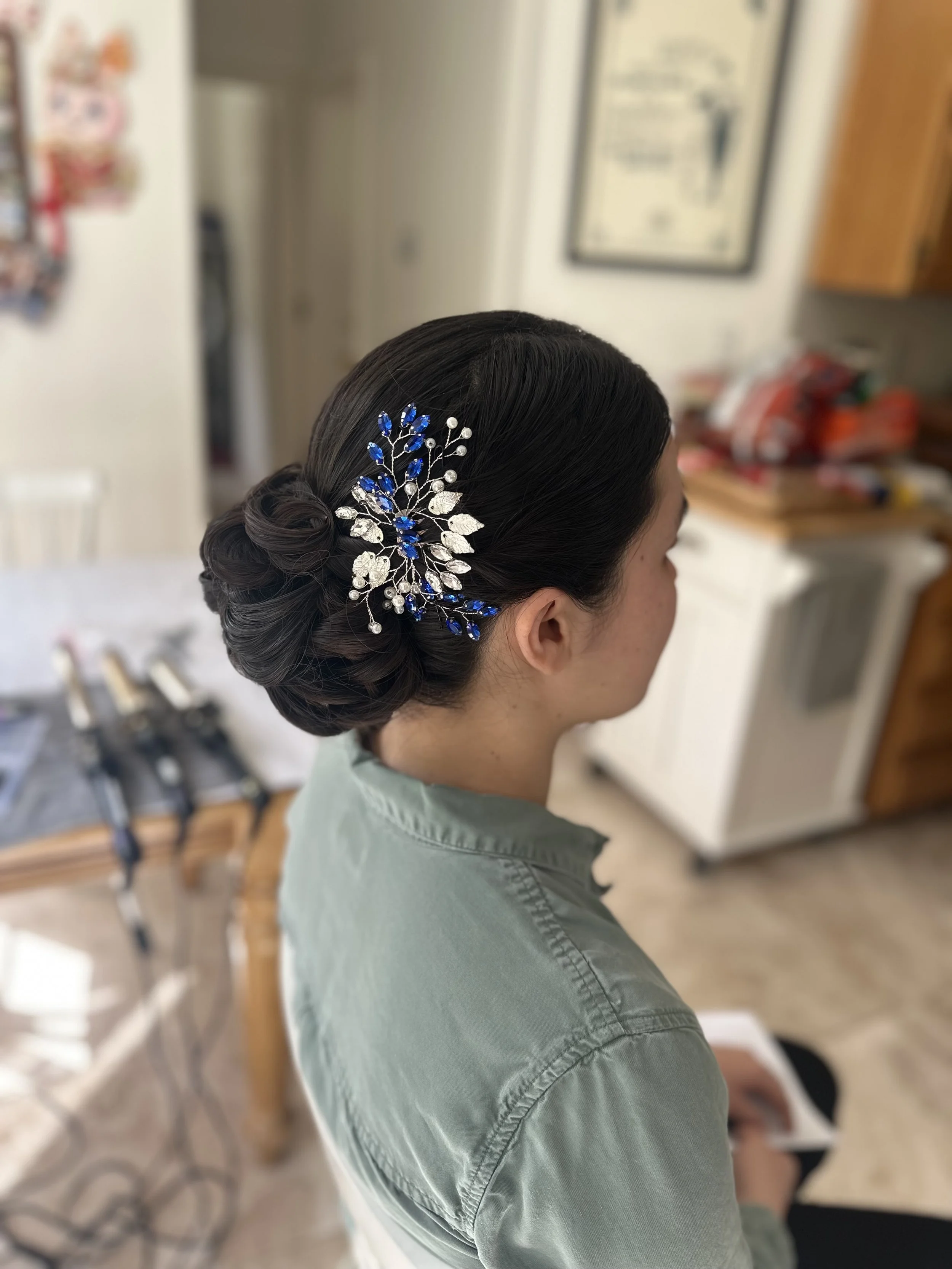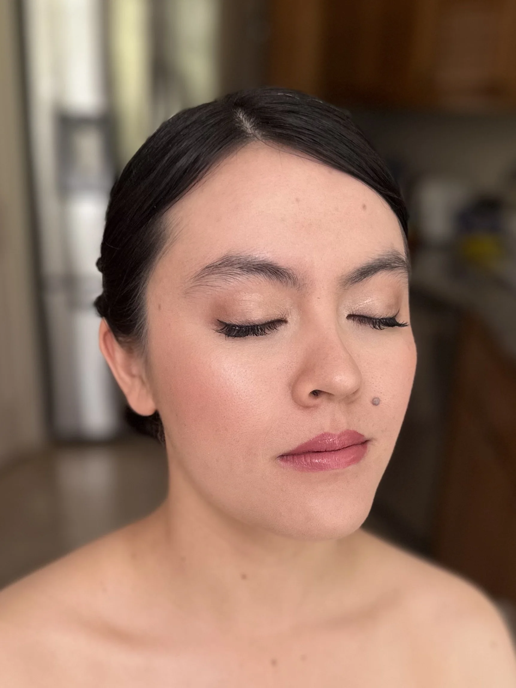I did a soft natural glam with lash cluster and a sleek classic low bun for Christina
