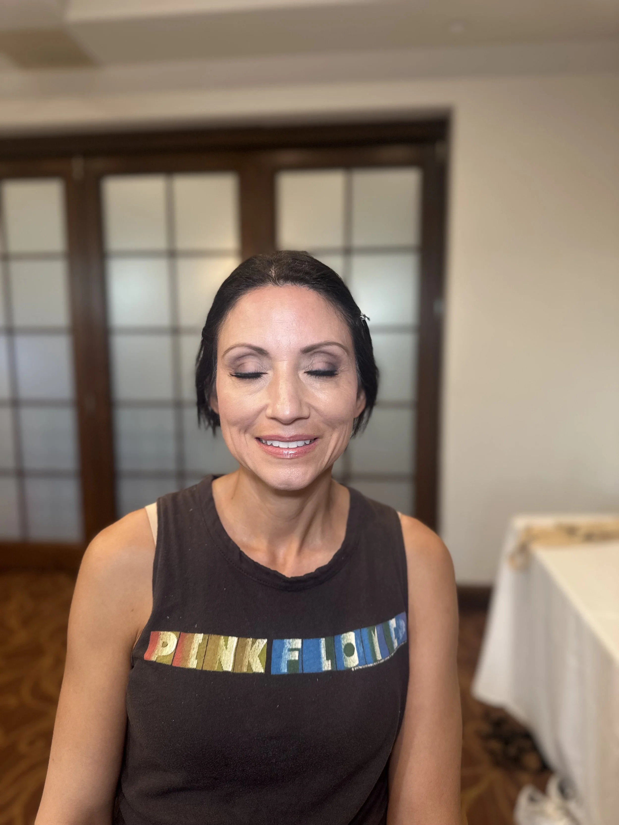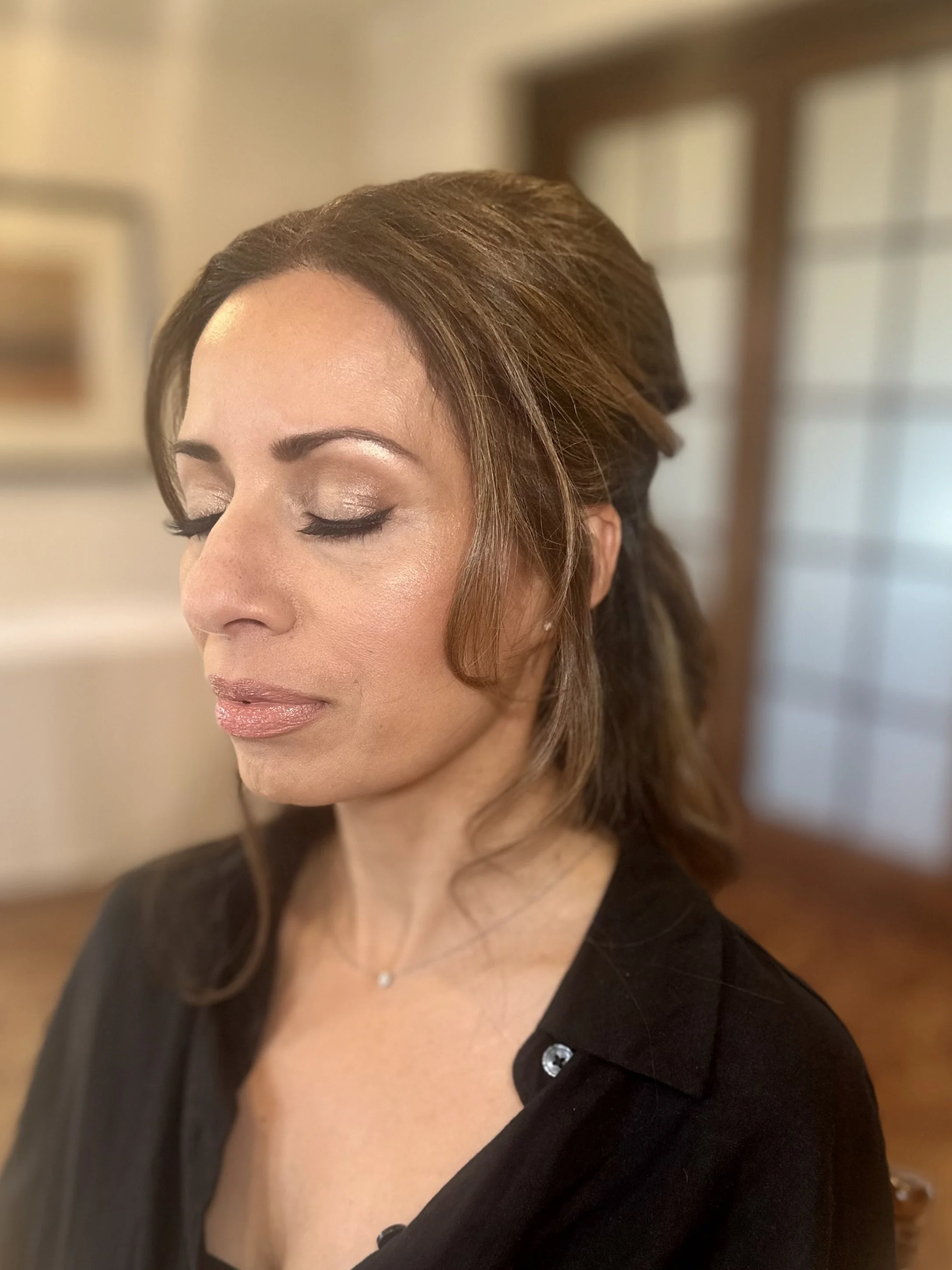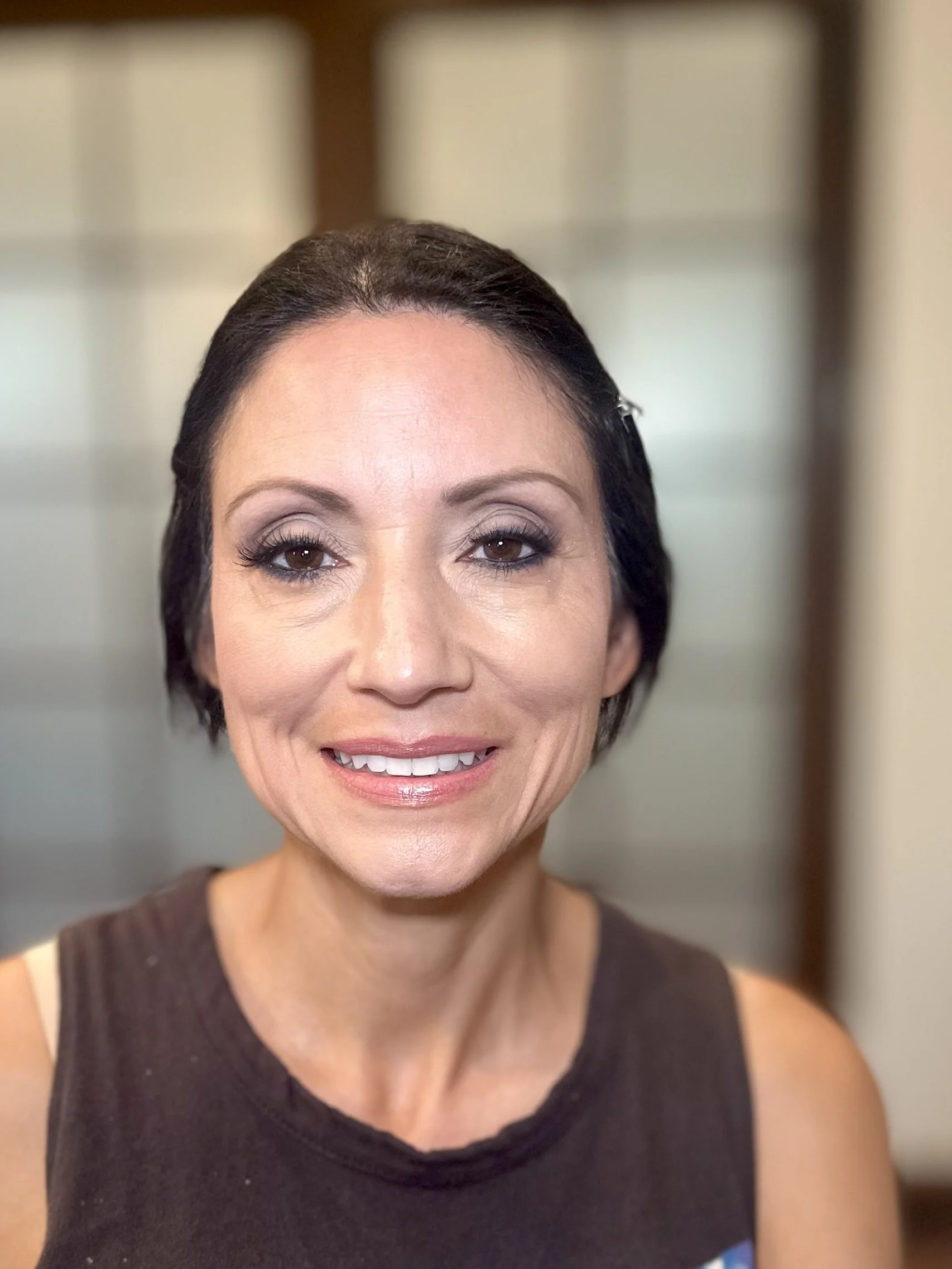 mother with lovely smoky eyes airbrushed makeup and glowing skin