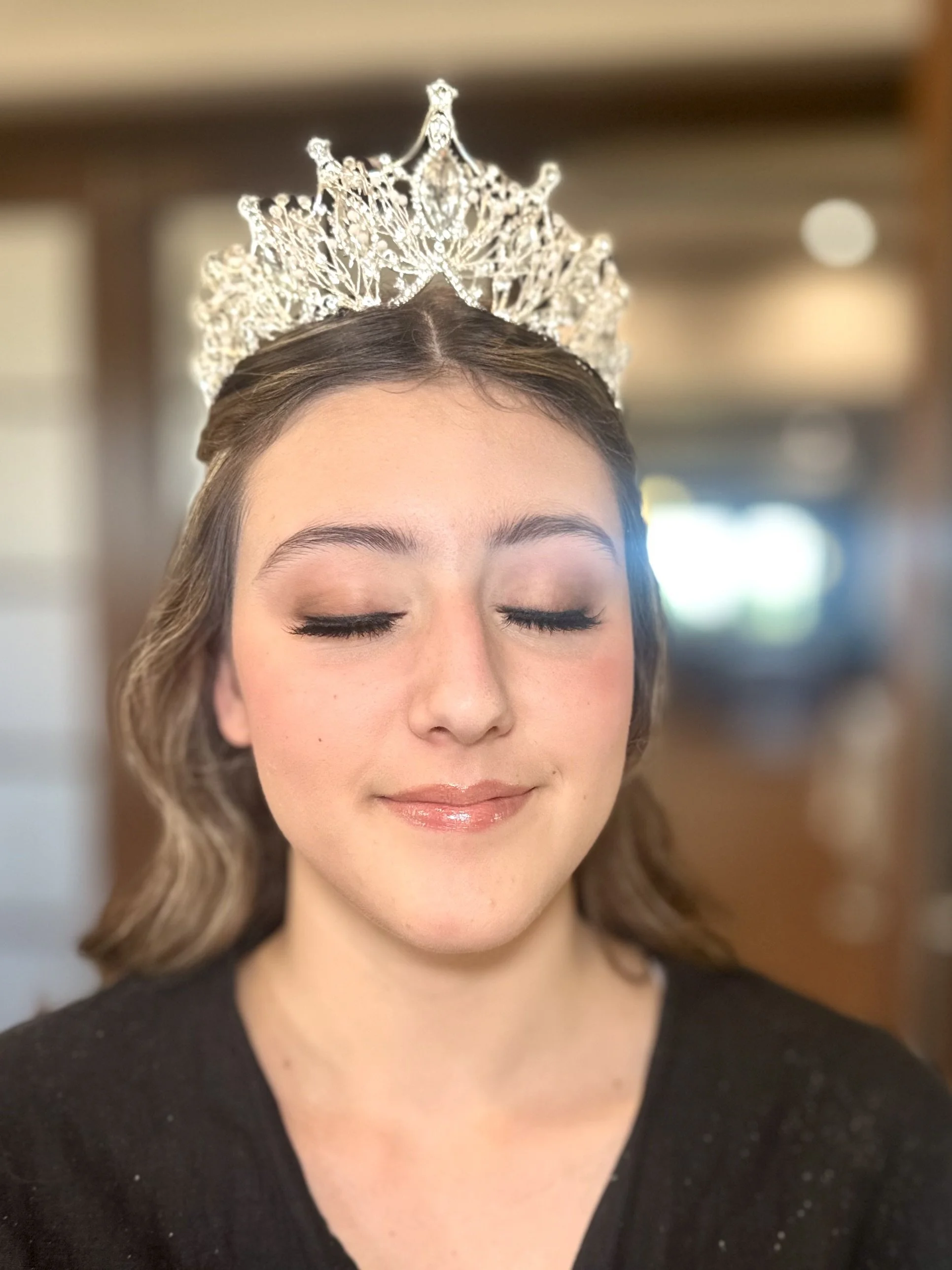 Airbrush makeup soft natural glam and wow look at that tiara!